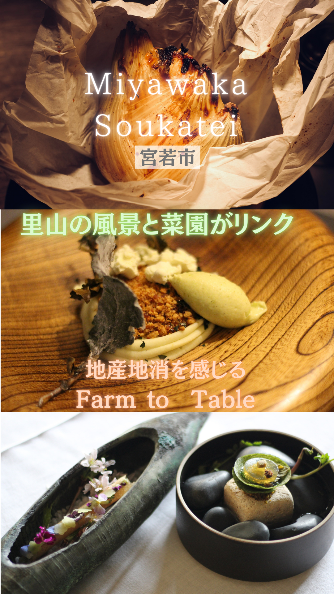 四季折々の里山の風景と、店舗内の菜園がリンクする「Farm to Table」レストラン。